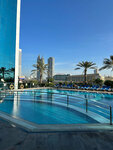 In principle, everything is very good, beautiful, delicious food, excellent service, cleaning every day. But there are a few buts. In October, the balcony in the room cannot be opened. The question is, why take a room with a balcony??? Although we were settled with a sea view, it is very beautiful. Maybe it's because of the intense heat, but in fact, hoping to go out for at least a second and take pictures or just drink tea on the balcony, then there is no such opportunity from the word at all, I was upset, honestly. Then the renovation in the room; probably in the 90s it was generally the coolest renovation, but also in the picture the colors are so beautiful, beryuzovye and dark green, but in fact, yes, all the furniture is there, but unfortunately it's not new for sure. The only thing that saves is that there is a wonderful service, in terms of the human factor, only because of this I do not bother with repairs. But the floor is beautiful, well, as they say, at least something. Well, from the window, to the floor, there is a very beautiful view of the sea and to the balcony, where you can not go out!!! What's more, from the outside there are very beautiful buildings, like 2 towers from Moscow City, and between them there is a swimming pool and sun beds. A very interesting parking system, that is, they have a small parking lot, a taxi pulls up there and a special person calls it to you and shows that the car has arrived, for example in Rotana, which is right in the center, this did not happen, it even surprised me. Everything is beautiful, super, and the pool, and for children and adults, and so the towers are cute, but there is nothing to breathe, or rather, the air conditioner in the room goes in a circle, that is, it does not take air from the general system or from the street, but in a circle, than we thought, it cools, in our the question is how to make it take clean air, they said there is no such thing, You can open the door and let the air out of the corridor!!! Wow!! What I am doing at the moment, well, of course: to give 100 tr. in 7 days and sit near the door to ventilate, so that just the air - it was oxygen that came in, since there is really almost no air, I am suffocating. And about humidity?? Due to the fact that there is no air supply, it goes in a circle and if you go to the shower, this steam room does not disappear anywhere, my floor here is really in steam and water, and you open the door, so there is generally condensation under the door. It's a shame to me, the hotel is so beautiful and such a stupid air-conditioned system. I understand that this was not taken into account initially during construction, and the girls at the reception are not to blame for this, but I am terribly uncomfortable due to the lack of normal air. Everything else is very good here. The metro is not far away, 2 turns, if not in the wild heat, we arrived in October, then it's not far to walk here, 2 turns, there is a path with cats along the way, so cute, here the locals feed cats, something reminds Turkey, here tourists walk stroking them, so pretty. On the ground floor there is a reception, things are immediately taken to your room, very friendly, I gave 5 stars for the service, although there are a lot of joints. But the human factor is on top here, well done!! About the pool: it's small, but you can swim, but again, depending on what you compare it with, for someone it's very big, for me it's probably average, maybe a little less, but very good, first of all clean, cool, does not smell of chlorine or something else, that is, there is no smell well, or I didn't think, there is a department for children, although adults are sitting there, I was sitting there too, it's just when no one is there, you can sit in the water up to your waist, like on sun beds, well, basically that's what women do here, it's nice, well, that is, from above in the evening, including the heat And you're sitting in cool water below the waist. In the adult pool itself, this one is just different in height with an overload, the depth is not very large and it's super, since I swim very poorly and was afraid to get to the sides from a small height on the contrary, I thought if it was deep, then it's better not to, but then I took a chance, swam, looked, and there I I'm standing normally, it calmed me down and pleased me, well, that is, in principle, I can even just walk around the pool, you can not even swim, so I drive with my hands and everything, and relax, choose the most convenient location, it's generally super, very convenient. About the sun beds, there are both near the pool and behind it, there is an area where there are tables and chairs and around the perimeter there are sun beds with tables so that there is enough space for everyone. The sun beds are soft and comfortable, you can relax on them even after the pool is closed. What else, we took breakfast, lunch, dinner. You can go out to eat in the courtyard for breakfast, there are no more for lunch and dinner, they apparently have their own rules there, I don't know how to explain, but they put beautiful glasses for wine or water there for lunch and put napkins and so on. The waiters are nimble, they bring you to the buffet, the plates are quickly cleaned, they have their own system there, probably the main thing is speed, friendly, always smiling. The cook goes out and keeps an eye on everything, I wonder if they're good at it too. The food is good, there is a choice. At the expense of coffee-strong, I dilute a lot with milk, there is just no boiled water separately, there is bottled next to the juices, but not boiled, by the way, I dilute strong coffee, I just saw elsewhere that there is boiled water, so I wrote, a trifle, but I need it. What else is insanely delicious, some rectangles wrapped in dough and deep-fried, I don't know what's in the composition, but it's just super, and also mashed potatoes in breadcrumbs, there's a queue right behind it, as t