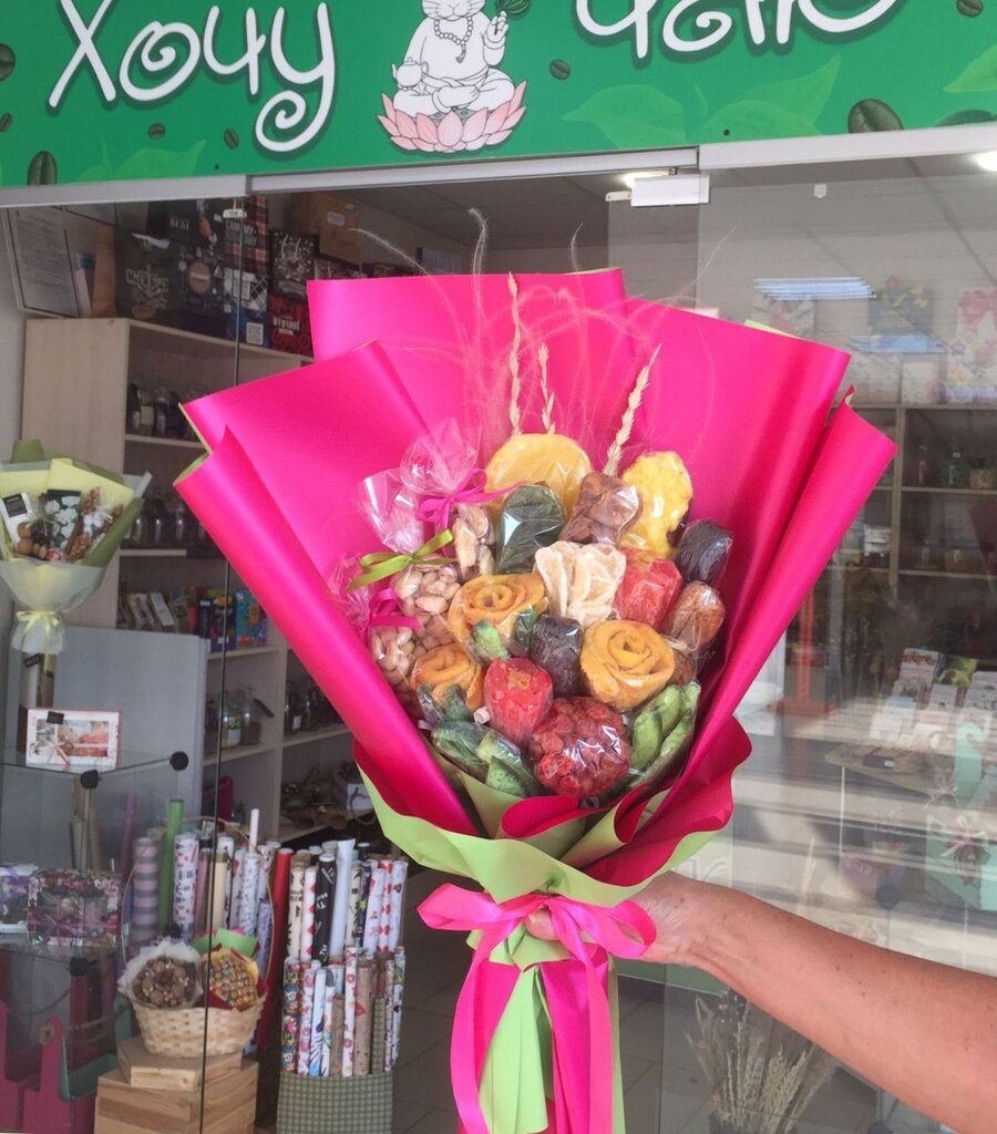 Хороший магазин. Приветливые продавцы. Подскажут, посоветуют. Брали несколько букетов с чаем, орехами, сушеными фруктами для именинников. Необычно. Красиво оформлено. Всем понравилось! Спасибо