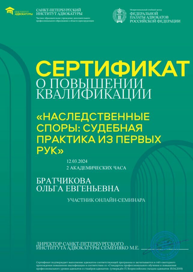 Адвокат Братчикова О. Е.