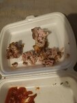 We ordered two portions of veal on the grill. Before ordering, they clarified whether the meat was fatty, the guy at the checkout said that it was pure meat, it was veal, not fatty. Since we took the order with us, we found out at home that instead of pieces of meat, there were pieces of incomprehensible veins and spit, there was very little meat. In the photo, my efforts to extract meat from it is unclear from which part of the cut pieces. It is impossible to cut with a knife and eat, the veins are not cut. Complete disappointment. If they had taken it on the spot, they would definitely have returned it back. One serving of 220 grams cost 39 rubles. The most uselessly spent 78 rubles. I do not recommend this point.