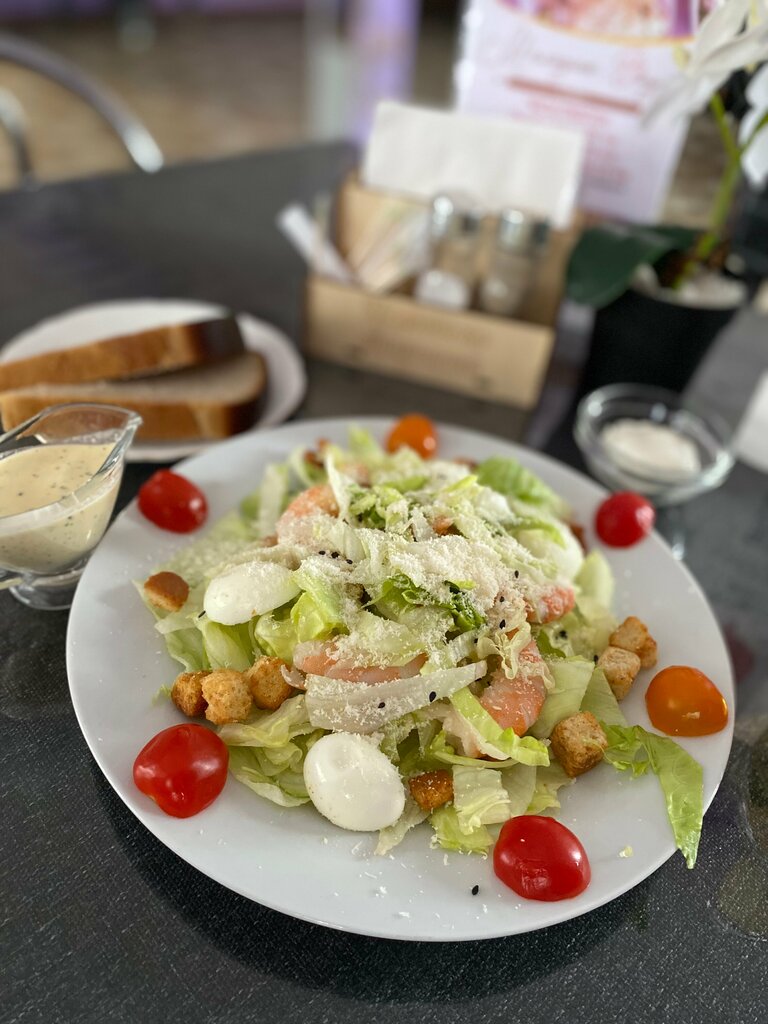 Кушали тут, когда были в автопутешествии. Нас было много, наверно это очень неожиданно, когда к тебе в кафе, в тихом месте заваливается толпа туристов, но сотрудники кафе не растерялись, всех накормили, меню ну очень разнообразное, все свежее, вкусно. Была на месте сама хозяйка, приветливая и отзывчивая женщина.