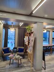 Отличное пространство для встреч, семинаров, мастер классов. Интересный интерьер. Есть много посадочных мест, кофе. Удобное расположение на 2 этаже с видом на каток.