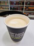 Главное преимущество этой кофейни - место. Потому что находится она в буквоеде. Здесь очень славно сидеть рано утром в тишине, окружении книг, на мягких диванчиках🧘🏻‍♀️ Кофе вкусный! Я обычно беру капучино на простом или кокосовом молоке. Пробовала и раф имбирный пряник, интересно и необычно) Персонал всегда очень любезный! Из еды выбор совсем небольшой: десерты и перекус. Сырники не рекомендую брать. Видимо, некачественные. В первый раз меня после них тошнило. Решила потом дать ещё шанс, уже не тошнило, но лучше не стало. Наверное, не первой свежести творог, и сырники ооооочень жирные, они аж блестят от масла, хочется их отжать((( даже боюсь представить, какой там состав…