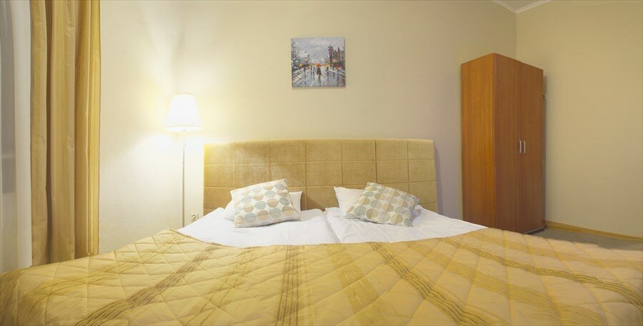 Проживали в номере эконом класса, поэтому пишу по факту относительно данной номерной категории: в номере было чисто?полотенца и постельное белье чистые, кровать и подушки удобные, в туалетной комнате сколы и трещины на раковине, в целом душевой и туалетной комнатам требуется косметический ремонт, есть телевизор, вайфай, кулер с горячей и холодной водой в коридоре, а также чай, гладильной доской и утюгом тоже можно воспользоваться в коридоре. В номере нет фена, плохо работает слив в душевой, при заселении нам сразу предложили переселиться в номер классом выше за доп.плату, но так как мы останавливались всего на одну ночь решили не менять номер. За весьма небольшие деньги мы сняли номер в центре города с завтраком ( завтрак домашний, на выбор, его готовят в течение 3 минут, для меня достаточно жирно, много масла). Хороший вариант для бюджетного туриста. Качества предоставленных услуг удовлетворительное, поэтому 3 звезды.