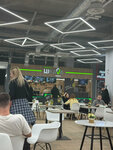 It doesn't taste good. borscht with chicken, tastes acidic. the queues are long, due to the fact that this is the only place on the food court where there is a more or less normal assortment. but this assortment doesn't taste very good. The burger is jerky. Combo fries are a disappointment. the nuggets are purchased, the chicken is unfinished, the potatoes are ordinary