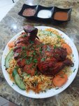 The indisputable advantage of the establishment is the cost. Two dishes with meat+ sauces+ two delicious drinks + "pies"😄 =101 AED. They gave me a lot of rice anyway, I couldn't finish it. The meat is tender. The waiter did a great job, the dishes arrived quickly. But still, the shabby tables on the street and the proximity to the roadway did not allow us to fully enjoy the atmosphere. I won't spoil the rating, but my opinion is 4.5/5
