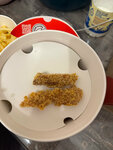 Заказала доставку 09.11.25 Заказала с доп оплатой чтобы привезли за 20 минут, можете посмотреть какие мне стрипсы привезли, они сухие и твердые, можно убить кого нибудь этими стрипсами Крылья были недожаренные, и 2 крыла слиплись в один и внутри была кровь Картошка максимально холодная Звонила 4 раза в организацию, ответа 0, игнор! В Яндексе как всегда не отвечают