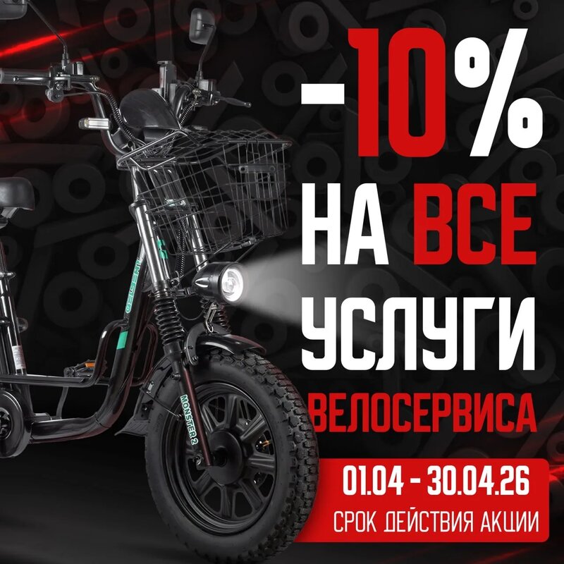 -10% на все услуги велосервиса, включая электротранспорт