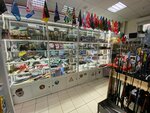Отличный магазин, большой выбор ассортимента. Средства самообороны, пневматические пистолеты, фляги, флаги, жетоны, кружки, термосы и даже мангалы с полевой посудой, товары для похода, туризма, рыбалки и развлекательных игр, есть выбор одежды, обуви, носков балаклав, футболок, и даже шапок. Аксессуары к одежде, фуражки, медали, часы, ножи, кинжалы и топоры разных видов и брендов. В магазине есть винтовки, прицелы, бинокли, патроны, мишени, очки, фонари как налобные так и обычные ручные, есть удочки, кормушки, поплавки, грузила, крючки, поводки, прикорма. Повербанки, ремни, лампы, дубинки, вымпела, зажигалки, газовые баллоны, блокноты и электрошокеры. При входе всегда встречает продавец, который всегда посоветует и поможет в выборе. Чистые стекла на витринах!