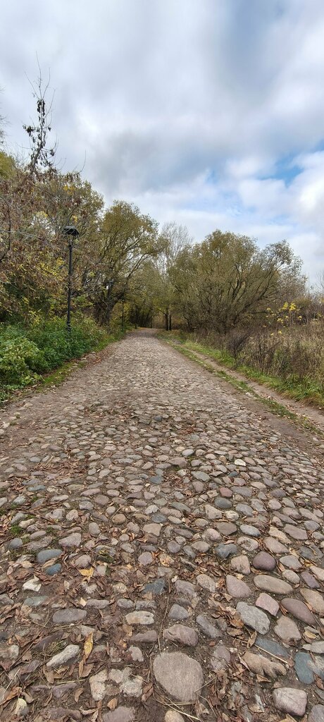 Древняя, ведущая с гор к реке, мостовая, вымощенная изрядно потёртым за века гигантским круглым булыжником, или, вернее даже - небольшими валунами, помнящими времена, когда не было ещё не только Коломенского, но и самого Стрибогова городища (так, ежели память мне не изменяет, его звали ещё местные вятичи в дохристианские ещё времена, и уже тогда оно было старое и заброшенное). Выглядит сказочно - совсем как в истории про "Мудреца из страны 03", только там была дорога из жёлтого кирпича, а тут из будыжника. Вдоль дороги растут неестественно огромные тысячелетние ивы, самые здоровенные из всех известных мне, оставшиеся от первобытных муромских лесов и невольно напоминающие истории про легендарного Соловья-Разбойника, нашего русского Робин Гуда, который тыщу лет назад грабил в этих краях богатых купцов и делился добычей с бедняками. Удивительное, сказочное место. И разбойников тут в наше время почти не осталось, что не может не радовать.