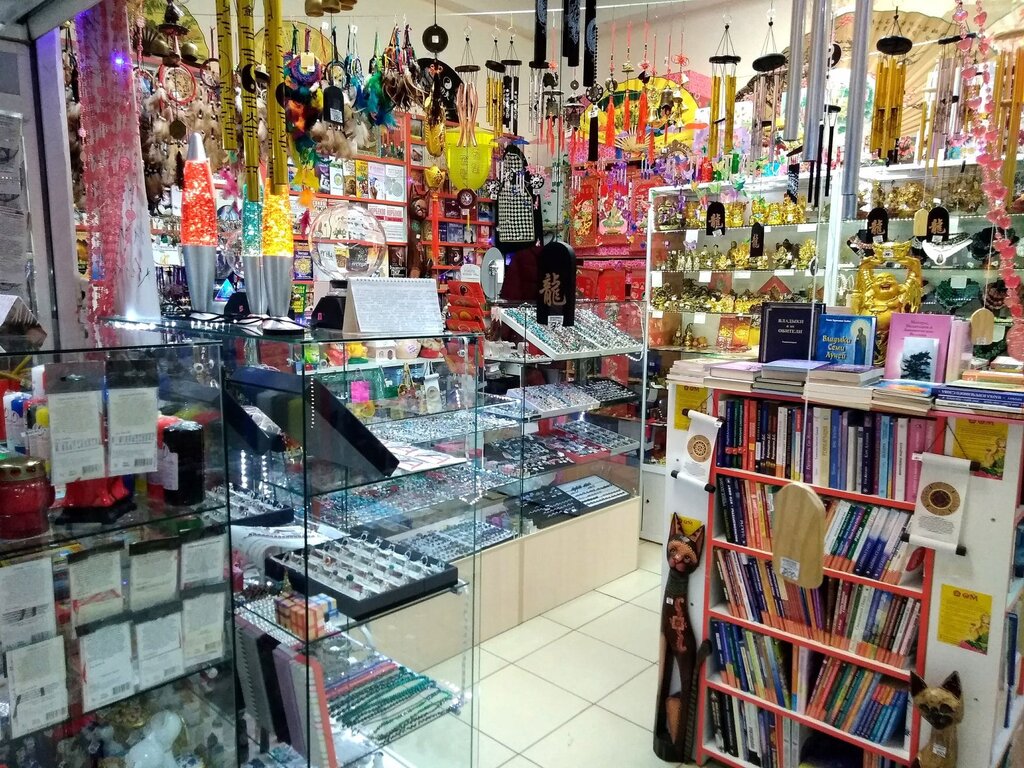 Это моё любимое место. Магазин добра в виде благовоний, литературы по самоосознанию. Здесь сувениры со значениями. Большой выбор свечей. Украшения с натуральными камнями. Люблю браслеты. Беру здесь, потому что можно походить спокойно под приятную музыку, вкусные ароматы и выбрать то, что больше всего отзывается. По картинке так не работает, можно ошибиться, а здесь выбираешь душой и тогда работает любой талисман 100 %. Серьги и кольца можно выбрать. Я лично, сама ношу все украшения из этого магазин. Рай для девочек. Чокер из пирита вообще не снимаю Это мой любимый. Хочу прикупить много чего ещё. Есть амулеты, древние знаки, все несут положительные энергии. Фен-шуй сувениры есть. Музыка ветра у меня дома висит возле входной двери. А если нужно сделать подарок, то конечно же иду в Эзотерический и беру, то броши, то колокольчики, то браслетики с камнями или кожаные, благовония с подставкой или амулеты. Кому-то дарила мобиль и шахматы из оникса, барабан. Да много чего ещё. На новый год девочкам подарила масляные духи. Теперь ходят ароматные. Ещё беру здесь для иммунитета Спирулина Плюс, Чаванпраш, для мамы Газекс, для папы Спеман, для тёти Шатавари. После операции пила эти таблетки, все что мне врач выписала, я прочитала по действию, что мне нужно и пропила эти травяные таблетки и быстро восстановился организм. Так что рекомендую.