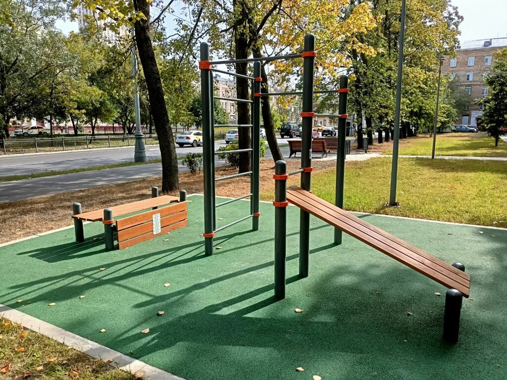 Регулируемые по высоте перекладины, скамья для пресса. Диаметр перекладин брусья 42мм. Спортивный комплекс отлично вписывается в различные дизайн проекты загородных домов, школ, дворовых территорий, площадок Воркаут/workout.