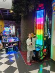 Если рассматривать как игровую - это ерунда. И ничего не понятно. Причём не понятно только мне(со слов администратора) . Стоимость "аттракционов " на стойке администратора. На аппаратах цены нет. Как и не на всех есть табличка, что они не работают. Цену видно при проведении картой оплаты. Как и остаток на карте. Лабиринт это отдельная площадка, вход с игровой. Что происходит в лабиринте - не видно. Короче, не надо рассматривать это как развлекательный центр для детей. Это едальня с игровым автоматами. С атмосферные залом - пещерой. В которой есть динозавры. Оплачивается все отдельно. Наверное в праздничную программу с аниматорами тут может быть повеселее. Брали пиццу. Пеперони норм, но по вкусу отличается от пиццерия. Гурман 5 лет сказал "не то". По моему вкус красного перца в соусе, а не только в колбасе. Картошка фри большая порция и очень вкусно. Туалет чистый. Без запаха. Спасибо! Нет крючков, чтоб повесить сумку.