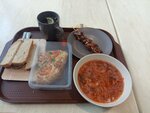 Брал бизнес ланч ! Котлета сырая , курица в супе сырая!! Меня пытались убедить что это такой фарш поэтому он сырой 🤔 Деньги вернули
