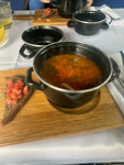 Delicious tomato soup and salad, beautiful serving. A large portion volume. Polite staff, cozy place.