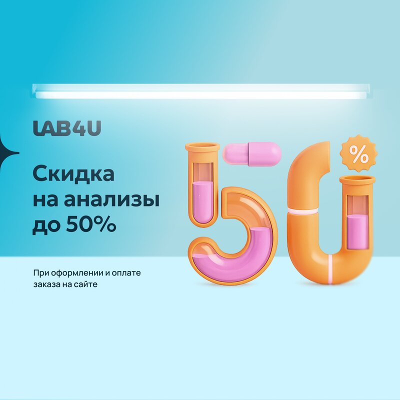 При оформлении и оплате на сайте Lab4U: удобный заказ, медцентры рядом с вами, без очередей, быстрый результат на почту и в личный кабинет