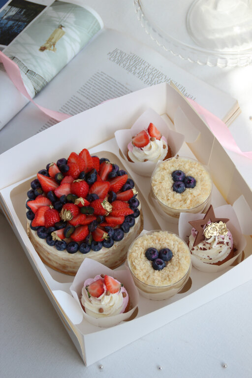 Получили в подарок набор капкейков и чизкейк. Красиво оформлено, но вообще не вкусно. Обманутые надежды .