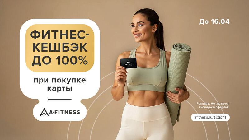 Фитнес-кешбэк до 100% при покупке карты. До 16.04 Фитнес-кешбэк до 100% при покупке карты. До 16.04 Реклама. Не является публичной оферт...