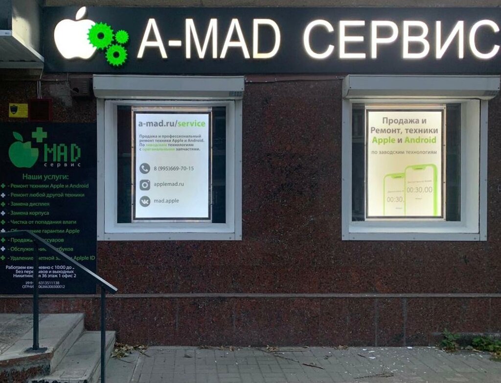 Ребята настоящие профессионалы, знают чем занимаются. И как устранить неисправность. Работу делают качественно. Клиентоориентированы. Суть в чём! На Айфоне 6 выгнулся корпус, да так, что рамка с дисплеем отошли от угла задней крышки и торчали, даже видно было, как светится внутри подсветка. Иду по сервисам, прогнозы не утешительные: корпус однозначно под замену, а это от 1800-2500 (типа оригинал или нет) ну и работа. Да еще говорят у вас плата теперь выгнута, может телефон перестать работать в новом корпусе, плата же деформирована теперь. Захожу к ребятам на Никитинскую в A-mad сервис. Они единственные сказали, что можно выпрямить родной корпус, подклеить рамку, без всяких замен. И это мне всё стоило значительно дешевле! Всё работает чётко! И уж неожиданно было, когда в подарок еще и защитное стекло подарили. Спасибо большое за проделанную работу всему коллективу сервиса! Рекомендую!