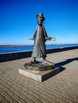 Скульптура замечательная, создатель с юмором, название креативное. Место проходимое, пожалуй бывают все туристы, Чехов потёртый весь до дыр, еле держится на постаменте. Рядом играл уличный музыкант. Набережная очень неухоженная, грязная.