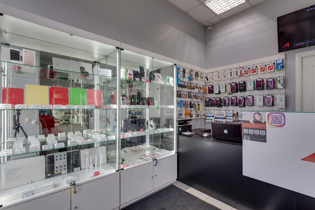 Замечательная мастерская, чистая, уютная, работают профессионально, одно удовольствие бывать тут. Мои девайсы "лечатся" и наблюдаются здесь , как в поликлинике. Чехлы и зарядки покупаем здесь. Чего нет в наличии - заказываем. Сегодня, например, оживили давно не используемый iPad - отвязали от учетной записи, перенастроили на необходимую новую, проверили аккумулятор, симкарту. Уложились в полчаса. За весьма умеренную стоимость, также купила новый чехол. Диван и кулер для клиентов. Очень рекомендую.