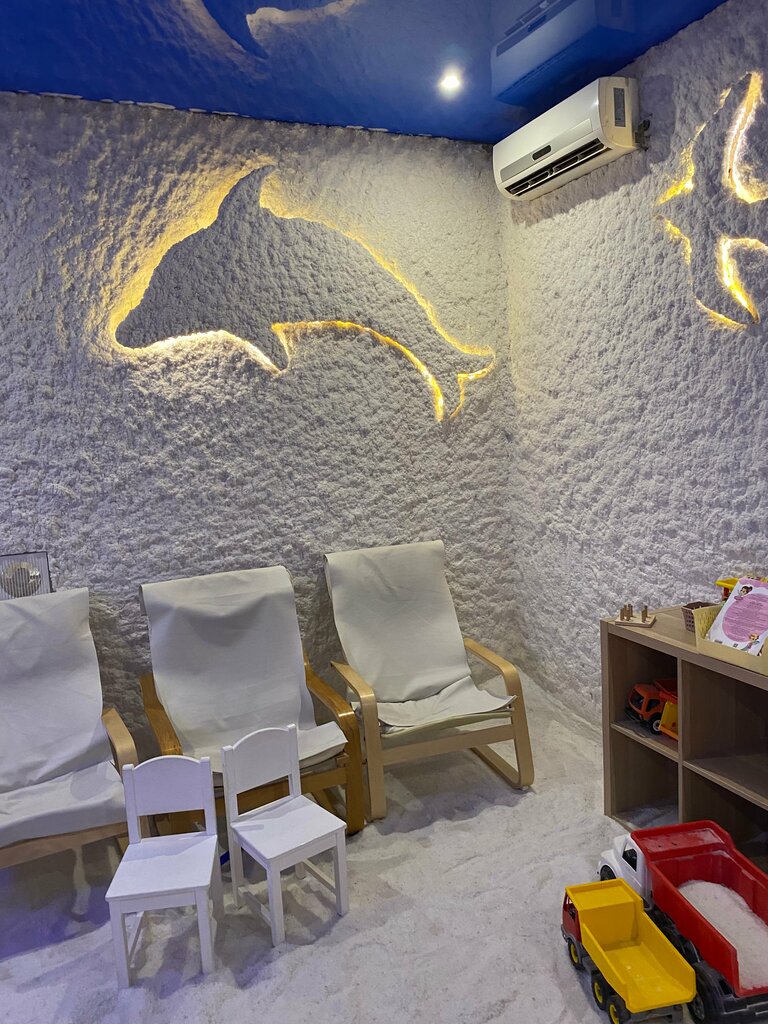 Ходим с детьми в пещеру. Комната представляет собой небольшое помещение, где стены выстланы солевыми пластами, а на полу лежит толстый слой соли. По середине сооружена небольшая песочница, в которой лежат игрушки. В основном это машинки, лопатки, грабельки. Имеется так же световой стол для игр с солью и обычный стол с разуграшками, развивашки. На стене висит телевизор. Пепел каждым сеансом администратор спрашивает детей, что они хотят посмотреть. Для новых клиентов включают обучающие видео где профессор объясняет пользу солёной пещеры. Соль, которая расположена на стенах и полу - это обычная пищевая соль, она является антисептиком, поэтому все бактерии и вирусы, попадая в эту комнату вместе с посетителями, в течение 3 секунд погибают. То есть фактически в соляной комнате просто стерильно. Но пользу для органов дыхания несет не она, а мелкодисперсная соль под названием аэрогалит, которая засыпается в распылитель - галогенератор, и подается в комнату через трубу. Сеанс длится 30 минут. В это время нежелательно выходить из комнаты, чтобы не нарушать концентрацию воздуха. Но в случае попадания соли в глаза, конечно, можно. На стенах много плакатов с полезной и рекламной информацией для посетителей. Перед посещением пещеры всегда берём кислородный коктейль. Полезно и деткам нравится. Так же можно приобрести полезную продукцию например солёной раствор аква роса. В А-соль всегда чисто и приятная атмосфера и цена радует 👍 Рекомендую, особенно тем кто часто болеет 😏 Администратор всегда поинтересуется вашим здоровьем, все объяснит и проконсультирует как без вам помочь с вашим недугом!)))