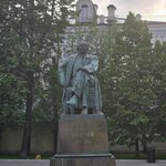 Задумчиво сидящий! В тихом скверике, перед храмом Большое Вознесение или за ним, между Малой и Большой Никитской, стоит памятник из бронзы на граните Алексею Николаевичу Толстому. "Красному графу", великому писателю. Только жаль его, впрочем как жаль и все памятники в Москве! Голуби, божьи создания, сидят на них и гадят. Это бич и неизбежность всех памятников!!!(((