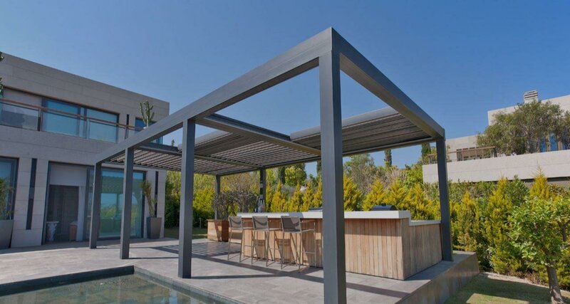 Биоклиматическая пергола с поворотными ламелями.