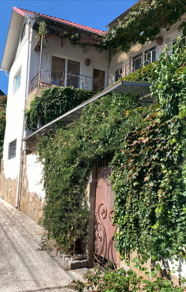 Мы в восторге от проживания! Жили сначала внизу: зелёный уютный дворик ) Потом перебрались наверх: потрясающий вид на море! Номера отличные! Все необходимое есть👍🏻 Рядом магазин👍🏻