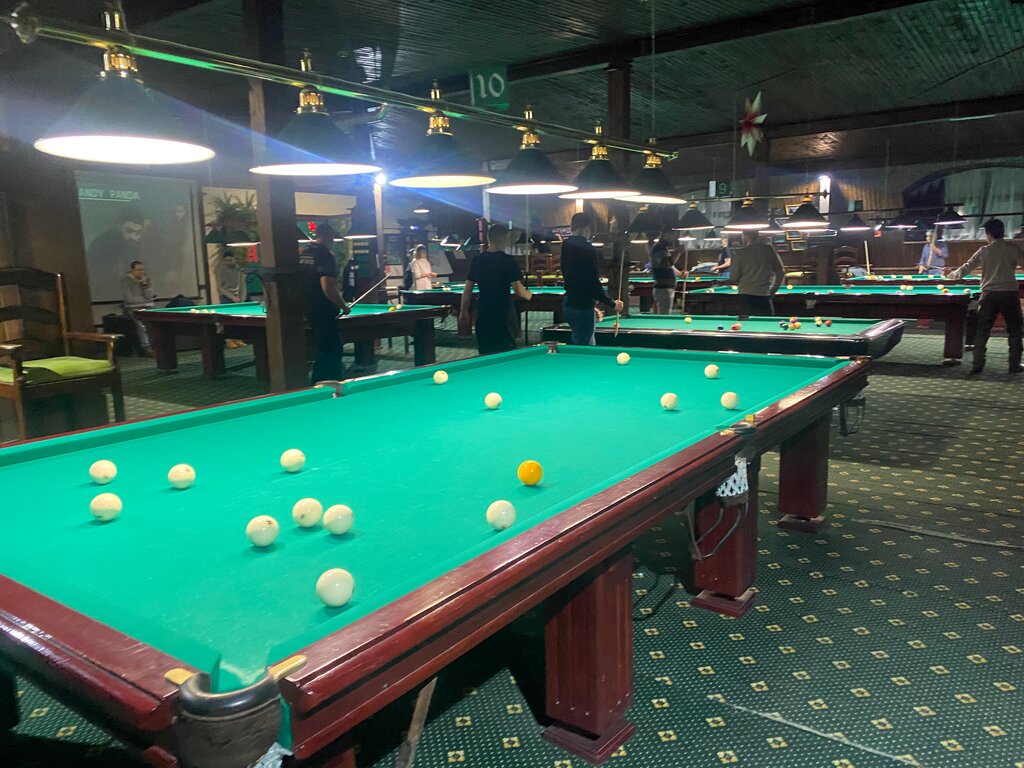 Хорошие столы, инструмент. Чуть хуже освещение (слабенькие лампы, причём вперемешку тёплого и холодного света). Маркер общительный, свое дело знает! А вот, контингент разношерстный. Как-то не очень, когда за соседним столом человек шесть подростков играют под пивко и стики в пул: ржач, мат-перемат... Или азиаты пара-напару: шумные, весёлые ребята, только жаль, непонятно, о чем они)). Иногда за столом можно увидеть очень сильных игроков: кто-то приходит потренироваться в-одиночку, кто-то показывает ученику/ученице азы бильярда. Есть и моменты, от которых просто не оторвать глаз. Например, когда симпатичная фигуристая девушка принимает "правильную" стойку, кладёт кий на свой 4-й размер и нижним винтом натянивает умопомрачительного свояка в среднюю лузу!! Эх, прямо Диана Миронова))