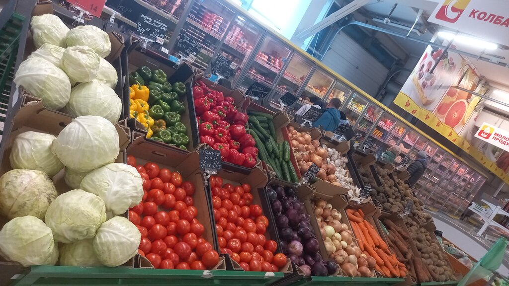 Довольно чисто, продукты свежие. Средний сегмент, но хорошие. Цены адекватные. Гнилья нет. Своя пекарня. Впервые увидели треугольный хлеб