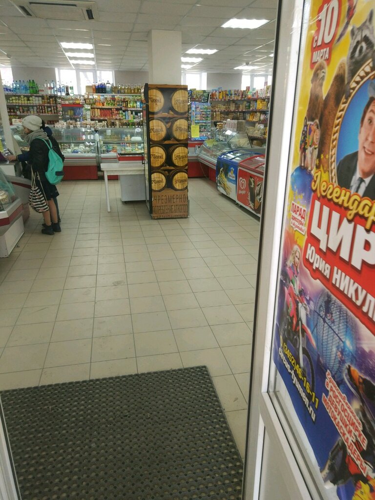 магазин не знаю на чем держится, всегда у них не работает техника ,все виснет, не чего не купить ,продукты дороговато, да и качество не очень. хлеб ,молоко свежее ,остальное не берём