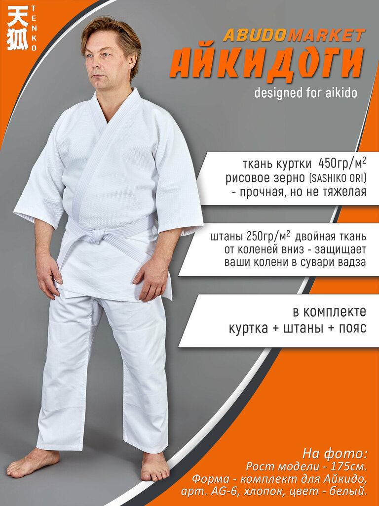 Кимоно для Айкидо TENKO AG-5 из гладкого хлопка плотностью 250 гр. на рост 140см.