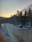 Большая территория, автобус возит по расписанию на горн склон. Вечерние мероприятия. Трансфер на вокзал, 5 мин, жд. Жили в 4 корпусе, очень, очень тепло. Отключали батарею. Номер не большой,есть фен, минхолод, чайник, чашки. Матрасы удобные, подушки большие, не очень удобно, так номер совр, чистый.