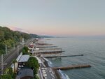 Замечательный санаторий с богатой историей и свежим ремонтом. Совершенно недалеко от аэропорта. До города также недалеко на такси. Еда хорошее. Обслуживание дружественное. Персонал в норме. В отличие например от Лазаревского пляж в относительно мелкой гальки. Заход у моря возможен даже без коралловых тапок. Территория не очень большая но при желании походить можно. Мне номер попался отремонтированный. Очень достойный. Особый шарм гостиница это таблички с именами актёров на номерах где они отдыхали.