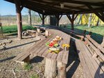 Природа отличная - зелень насыщенная, рядом речки (но их не видно, нужно пройтись), вдали от людей. Дороги до базы оставляют желать лучшего - добирались на такси, ощущение, как на лошадях))радовались, что не на своем авто. Площадка для волейбола, стол для тенниса, качели, песочница. 2 больших стола , каждый на человек 20, расставлены комфортно, мангалы. Есть батут, но он за доп.плату. Мини скалодром - страшненький, но есть и тоже платный. Туалет без мыла)). Но если цель - шашлык, природа и отсутствие инфраструктуры, то вполне хорошее место.