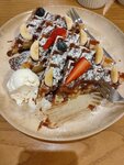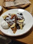 Просто покажу как с 2025года по 2026г уменьшался размер Венских вафель и его оформление: первая фотка цена 450-480, вторая 280 и что удивительно третья фотка это тоже 280, хотя казалось бы, цена должна была упасть до 200-250 хотя бы с таким оформлением. Уменьшилось количество бананов, клубники вообще нет, посыпки нет. В общем обидно, мне очень нравились вафли в этом заведении, но больше я туда за ними идти не хочу.