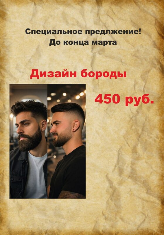 Специальное Предложение! Только до конца Марта! Дизайн Бороды ,за 450₽ Ждём вас,наши уважаемые Мужчины!!!