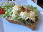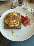 Внимательно осмотрите, что вам подают (вернее, что вы забираете). Нам вот например досталось блюдо яйца пашот с форелью, но без форели)) да и пашот совсем не пашот… После нашего замечания форель «довесили» (на фото видно как)))). Единственный плюс это достаточно демократичные цены для аэропорта.
