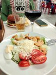 Безумное количество чеснока в блюдах! Перед полетом особенно в тему, да... Цены безумные, проверяйте перед заказом. Плюсы - приятный интерьер и очень красивая посуда.