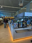 Понравилось данное кафе, вкусная еда - очень понравился салат Цезарь с креветками (очень интересный свой соус), порция была больше, чем я ожидала (в меню написано 250 гр). По чизбургеру - котлета с одной стороны была суховата, а с другой очень сочной (хотелось бы чтобы с обеих сторон была сочной). Цены приемлемы для аэропорта. Система самообслуживания - т.е. ты выбираешь по меню, сам заказываешь на кассе и сам забираешь свой заказ при его готовности.