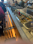 Были здесь впервые. За стеклом (как в школьной столовой) стоят лотки с салатами, гарниром, горячим. Можно выбранное блюдо самим подогреть в микроволновке, которая находится в зале. Посадочных мест достаточно, есть диванчики и высокие стулья типа барных. Можно сидеть и смотреть на взлетное поле. Когда мы были здесь, то была большая очередь. Стояли минут 10. Напитки можно оплачивать сразу на кассе, если вы не берете что-то из еды. Самообслуживание.