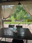 Отличное место для семейного отдыха! Бронировали бунгало на 4 человек. Просторно, чисто, уютно, есть всё необходимое для проживания. Для приготовления шашлыка есть мангальная зона у бунгало, стол и стулья, подведена вода, что очень удобно, лишний раз не ходить в домик.В домике: холодильник, микроволновка,посуда. Большой хол с диваном, шкафом, столом и стульями и кухонной зоной. 2 спальни, в каждой двуспальная кровать, большой шкаф-купе, тумбочки, телевизор. Санузел совмещён с душевой кабиной. Большой плюс - подогреваемый бассейн и рядом уютное кафе! Вокруг зелень, ухоженная территория, площадки. Сюда хочется вернуться!