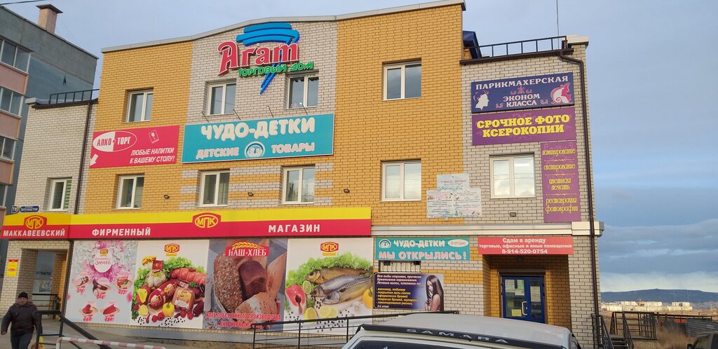 Красивое здание, на первом этаже фирменный магазин маковеевский, на втором этаже фото- копия, распечатка и дальше детский большой отдел, где продают одежду для детей и игрушки. Очень хорошее и удобное помещение, отличный ремонт!