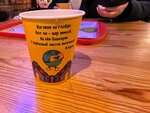 Были не голодны, поэтому взяли только башкирский чай погреться. В меню еще заявлен айран и мороженое из кумыса, но их не было( Чай с травами и мёдом вкусный. Интересный дизайн стакана с цитатой. Играет национальная музыка в современной обработке. Туалет на улице, открывается по дистанционному звонку с кассы.