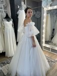 Свадебное платье А-силуэта из многослойного фатина создано для нежного и утончённого образа. Лёгкая юбка красиво струится при движении, придавая платью воздушность и лёгкость. Лиф выполнен из гладкого кружева и дополнен кружевными лямками, создающ...