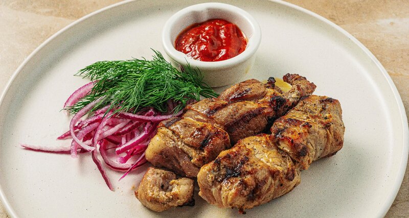 Тесто пшеничное,баранина филе,лук,зира,хмели сунели,черный перец