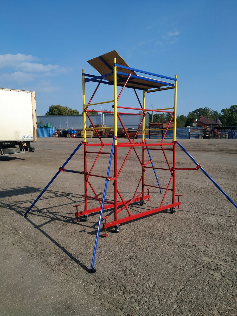 Вышка-тура на колёсах с настилом размерами 0,7*1,6 м в комплекте с лестницами и ограждениями