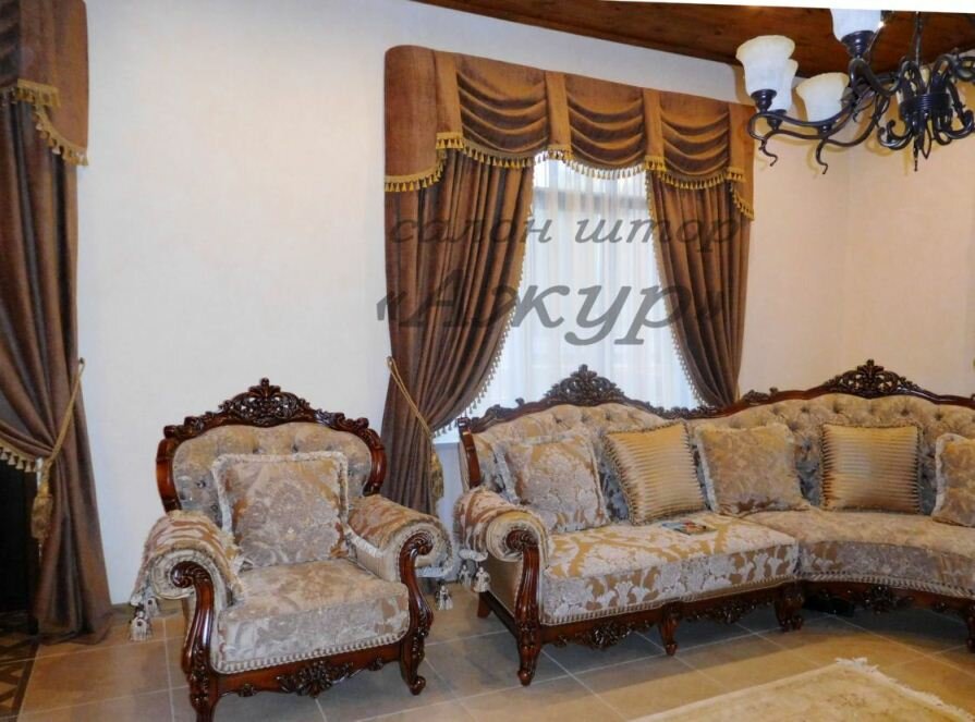Дизайн и пошив штор на арочные окна на заказ. Большой выбор тканей и аксессуаров.