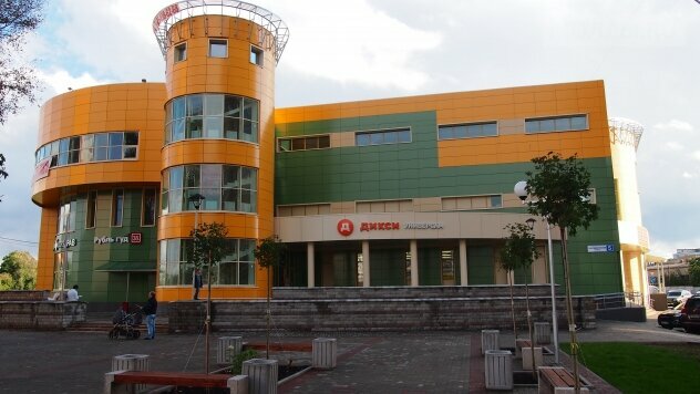 Хороший торговый центр, на 1 этаже Дикси, на 2 Детский мир, на 3 этаже много пустующих помещений, с торца здания есть Альфа-Банк и бассейн Китенок